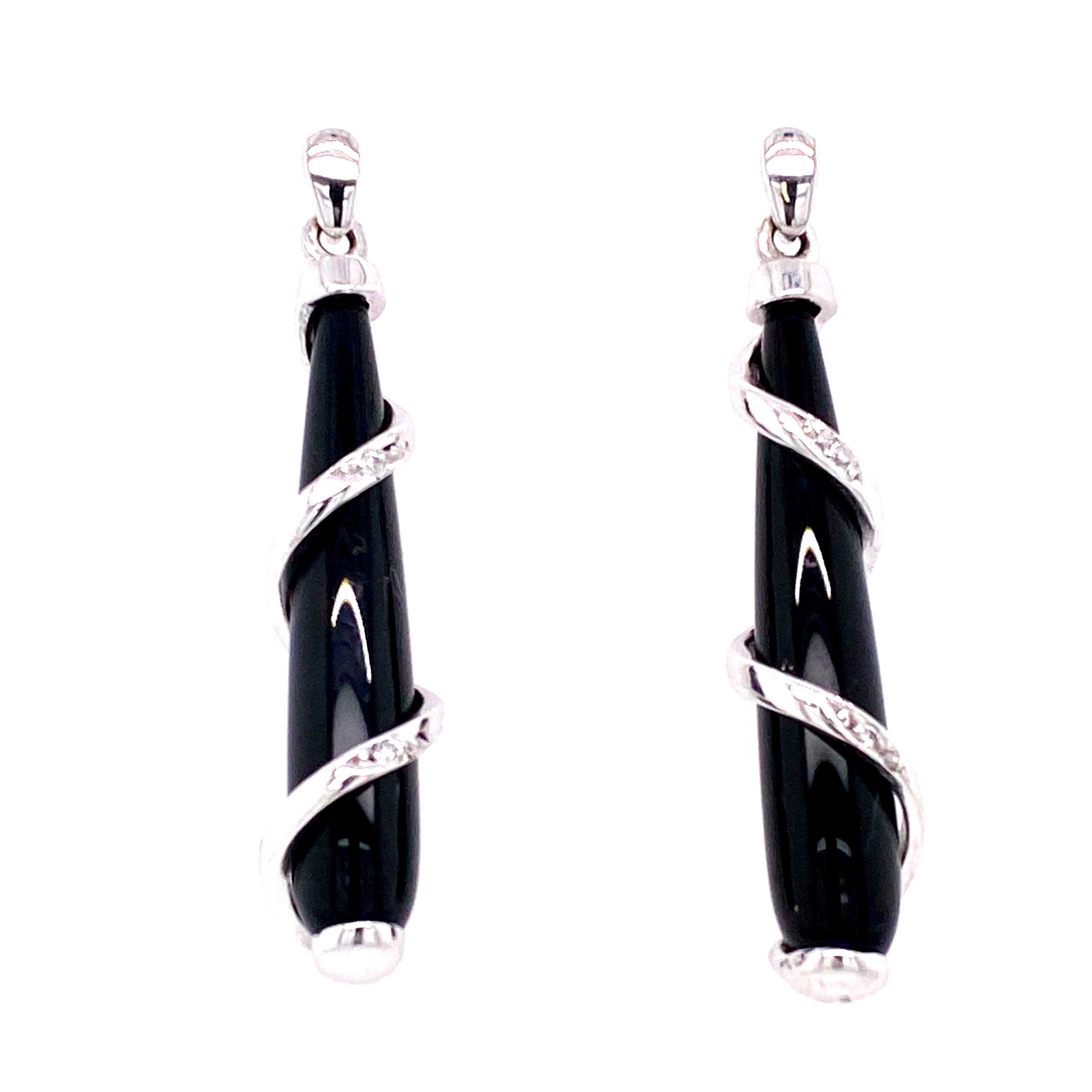 Sophisticated and versatile, these 9ct white gold earrings feature sleek onyx drops accented with sparkling diamonds. Designed with a secure stud post, they balance classic elegance with a modern edge—perfect for both day and evening wear.