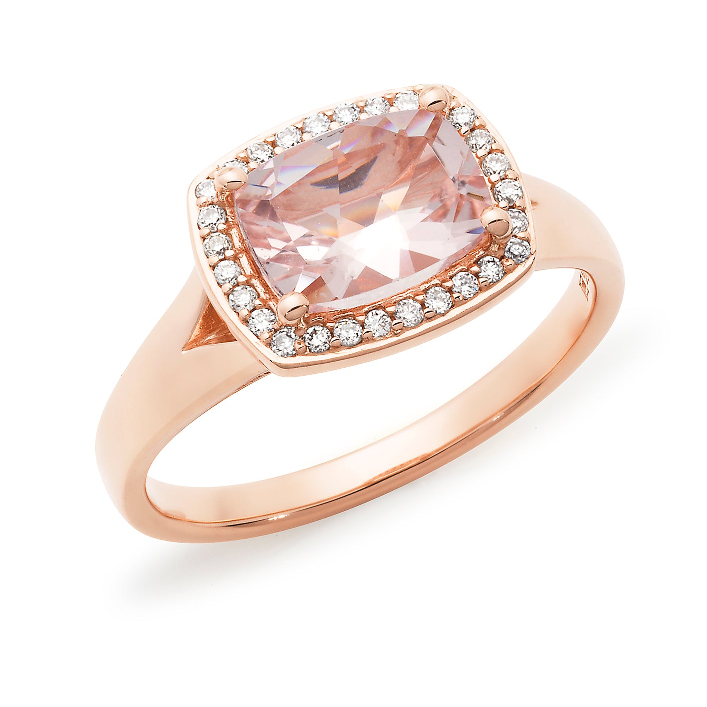 9ct Rose Gold Oblong Cushion Cut Morganite and Diamond ring