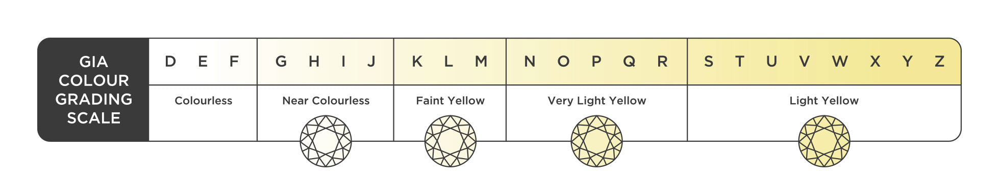Diamonds come in every colour, however, coloured stones are less desired as it diminishes the light's ability to dazzle as it does in colourless diamonds despite the cut. Unless, they are 'Fancies' which are rare diamond so unusually strong colour. The grade used to determine the desirability of colour in a diamond is measured from D (colourless) to Z (coloured yellow). The clear diamonds are the most prized and are the most expensive. It is recommended while purchasing a diamond you do not choose one less than grade H.