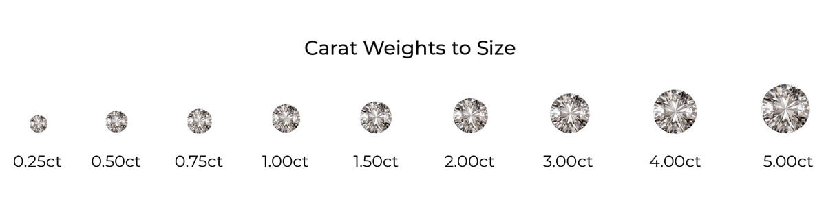 The industry determines the size of a diamond by weight, measured in carats. The industry weighs smaller diamonds using a point system, with every 100 points being equal to 1 carat.